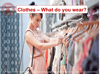- Vocabulary Development: extensive clothing vocabulary across contexts like work, school, beach, party
