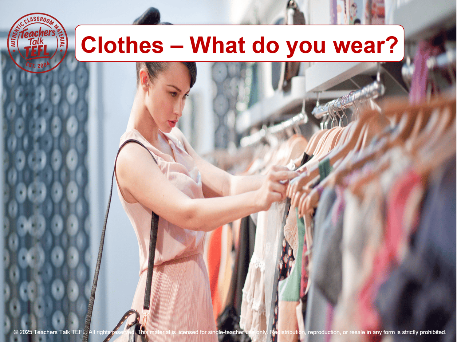 Clothes – A1 Level (Beginner)– PPT + PDF Lesson Pack (4:3 & 16:9)
