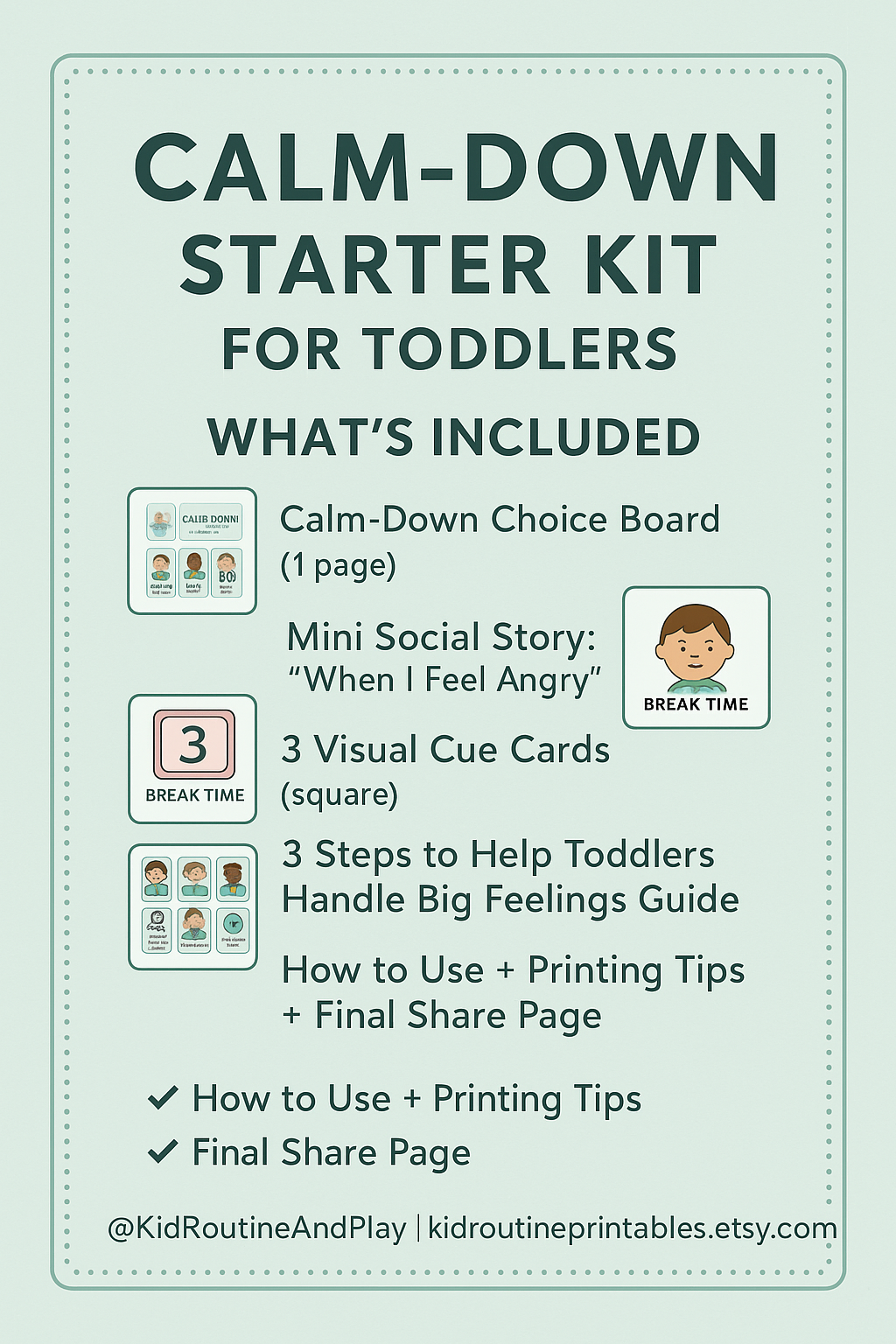 This printable toolkit includes visual supports designed for toddlers and preschoolers, especially helpful for visual learners and autistic children.