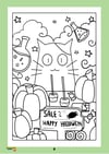 Line art cute Halloween black and white for kids and children