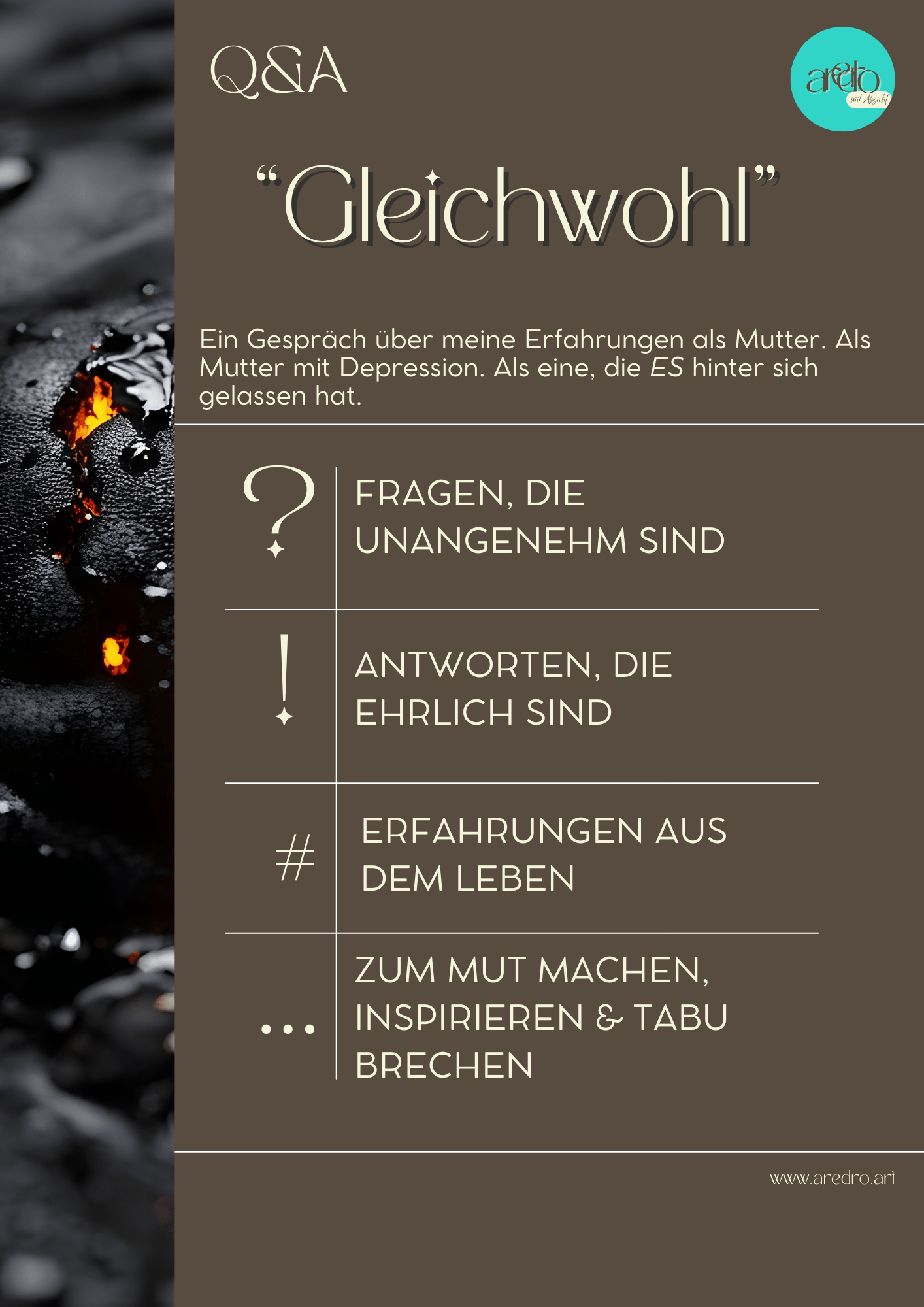 „Gleichwohl“ ist ein ehrliches, ungeschöntes Q&A über das gleichzeitige Muttersein und den Prozess, mit Depressionen zu leben und sie zu heilen.