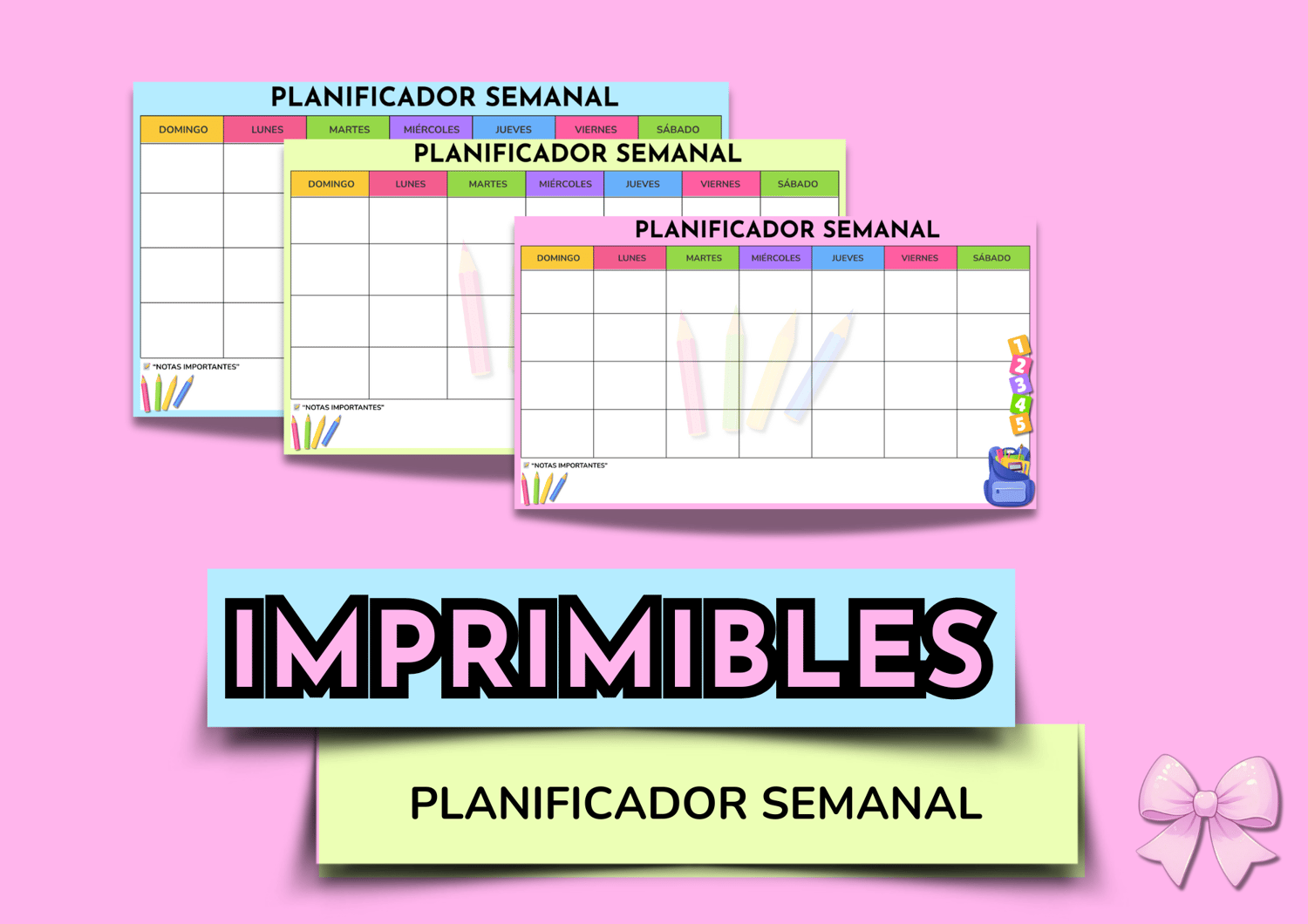 Este planificador semanal es perfecto para niños, mamás organizadas y maestras creativas. Ideal para imprimir y colocar en la nevera, escritorio o carpeta escolar.