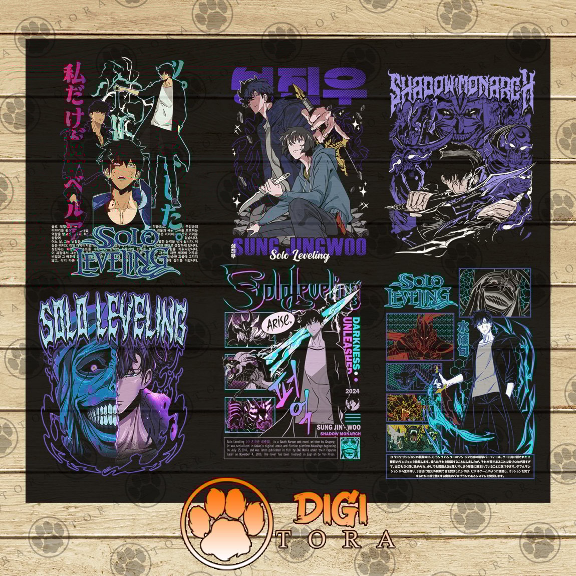 Pack Solo Leveling: 15+ High-Resolution PNG Designs | Premium Backgroundless Images for DTF, DTG, Sublimation, and More
