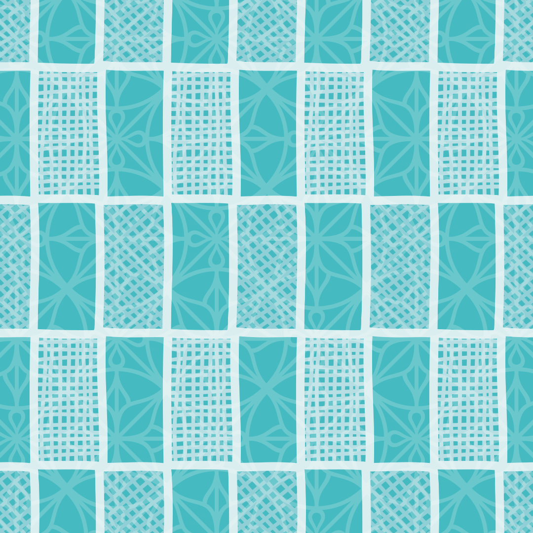 Doodle grid seamless pattern design with rectangles. Criss cross vector illustration in aqua color.