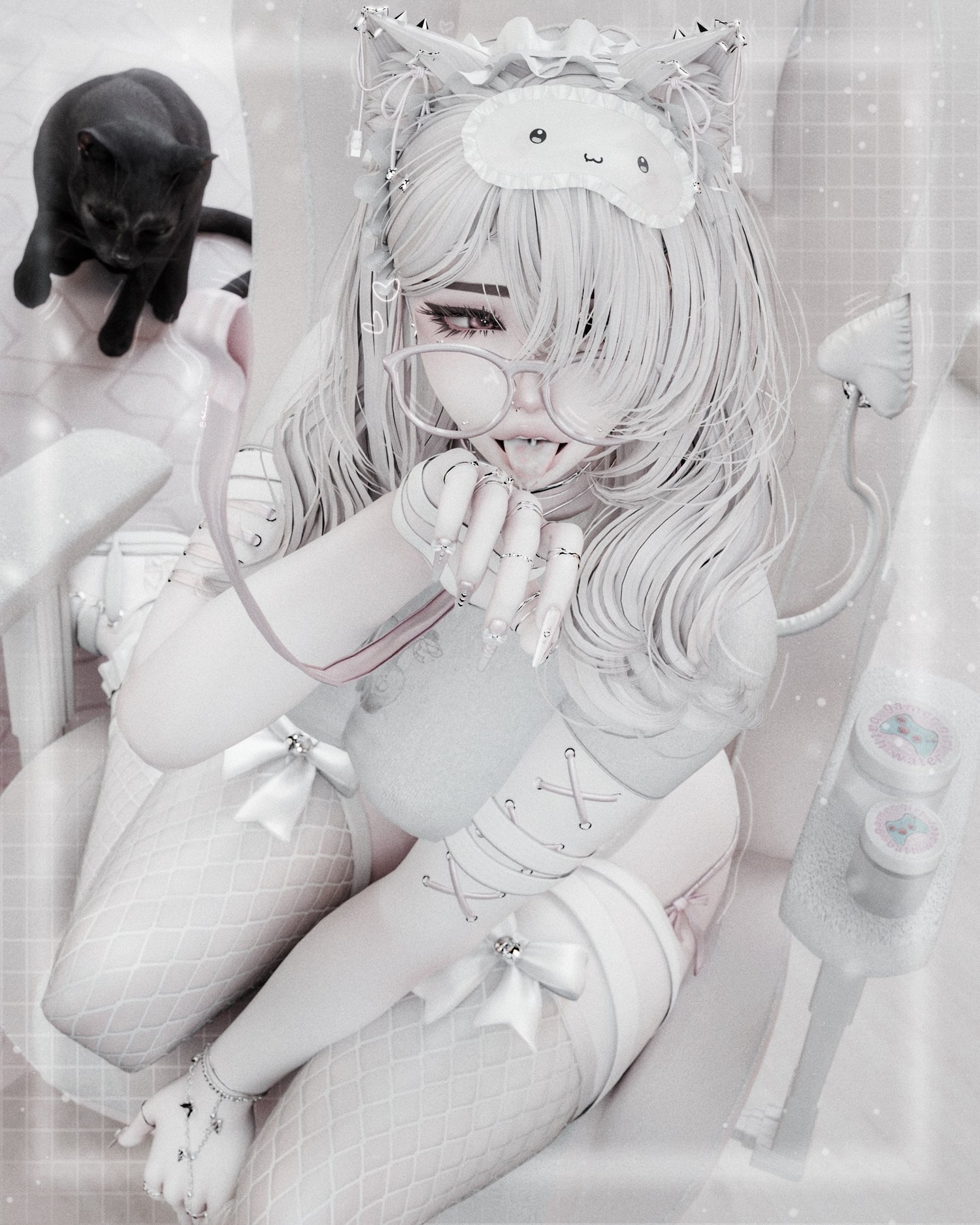 ♡ - Hair swaps, Black tips, Left/Right eye, Brows/Lashes black, Freckles, Tattoos, Skin slider, Nails, Chobits/Devils swaps, Metal swaps, Pasties black, BF Shirt black, Bras/One piece swaps, Tops swaps, Sweaters/Dress swaps, Panties swaps, Bottoms swaps, Shoes swaps, Fishnets swaps, Socks/Paw socks black, Bandages black, Sleepy mask black, Acc swaps, Collar/leash swaps.