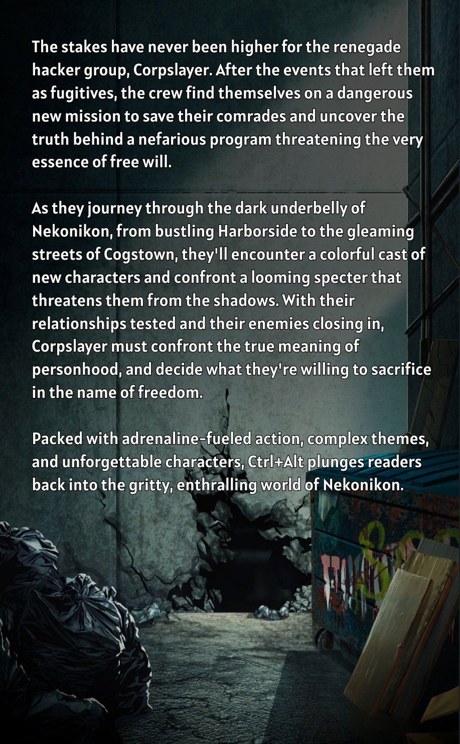 Packed with adrenaline-fueled action, complex themes, and unforgettable characters, Ctrl+Alt plunges readers back into the gritty, enthralling world of Nekonikon.