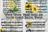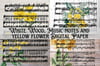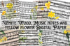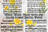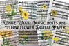 White Wood, Music notes, and yellow flower Digital Paper, Music notes and yellow flowers Digital Paper, Music notes, and white wood Vintage Paper, Music notes, and floral Background.