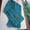 I heartily recommend the York Merino, it’s super soft and this little scarflette has been dragged in and out of my sample bags, travelled to Woolfest, been worn throughout this Autumn/Winter and still looks fabulous.