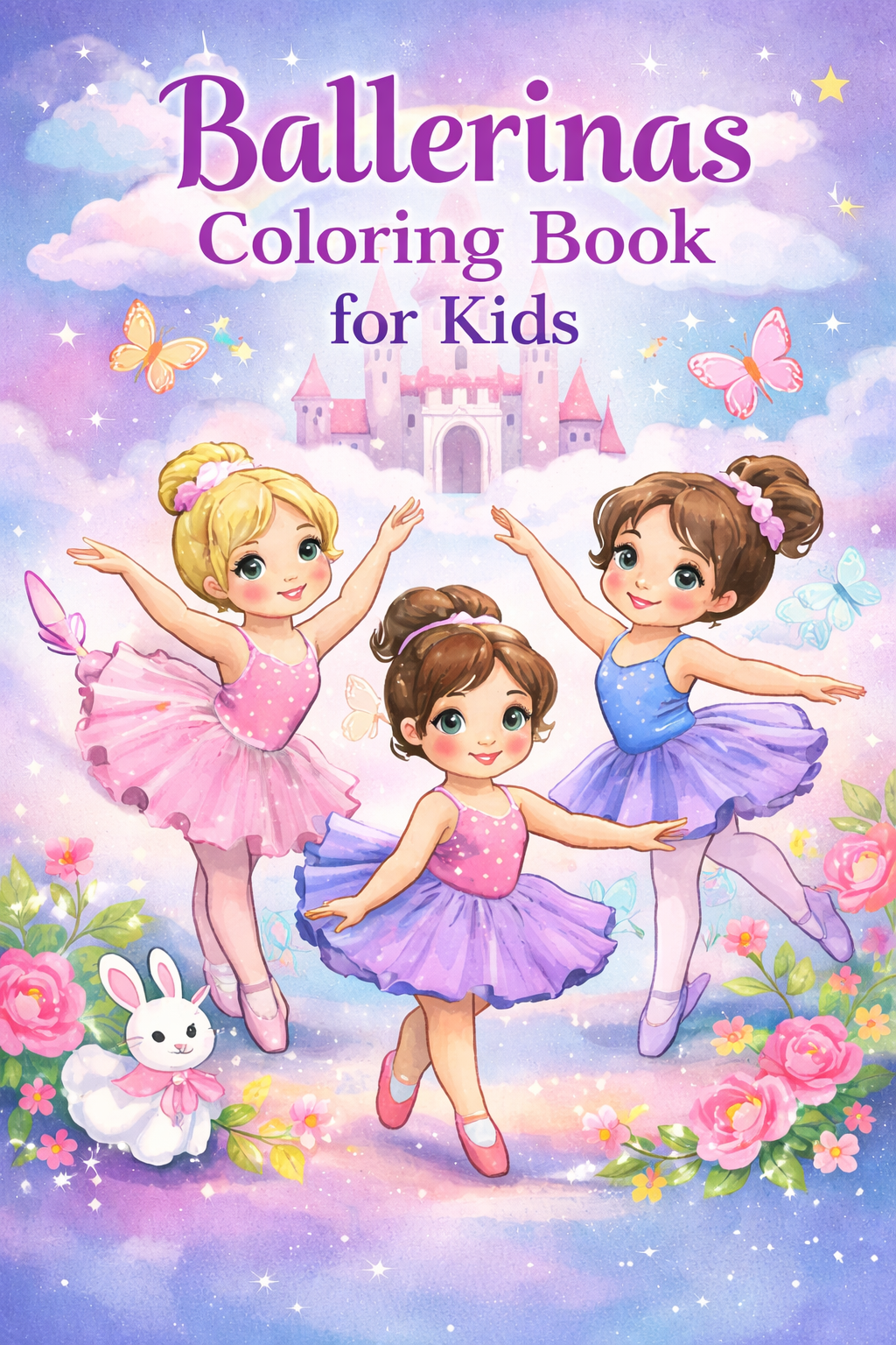 Ballerinas, coloring ebook for kids, 53 pages, digital product, instantly download