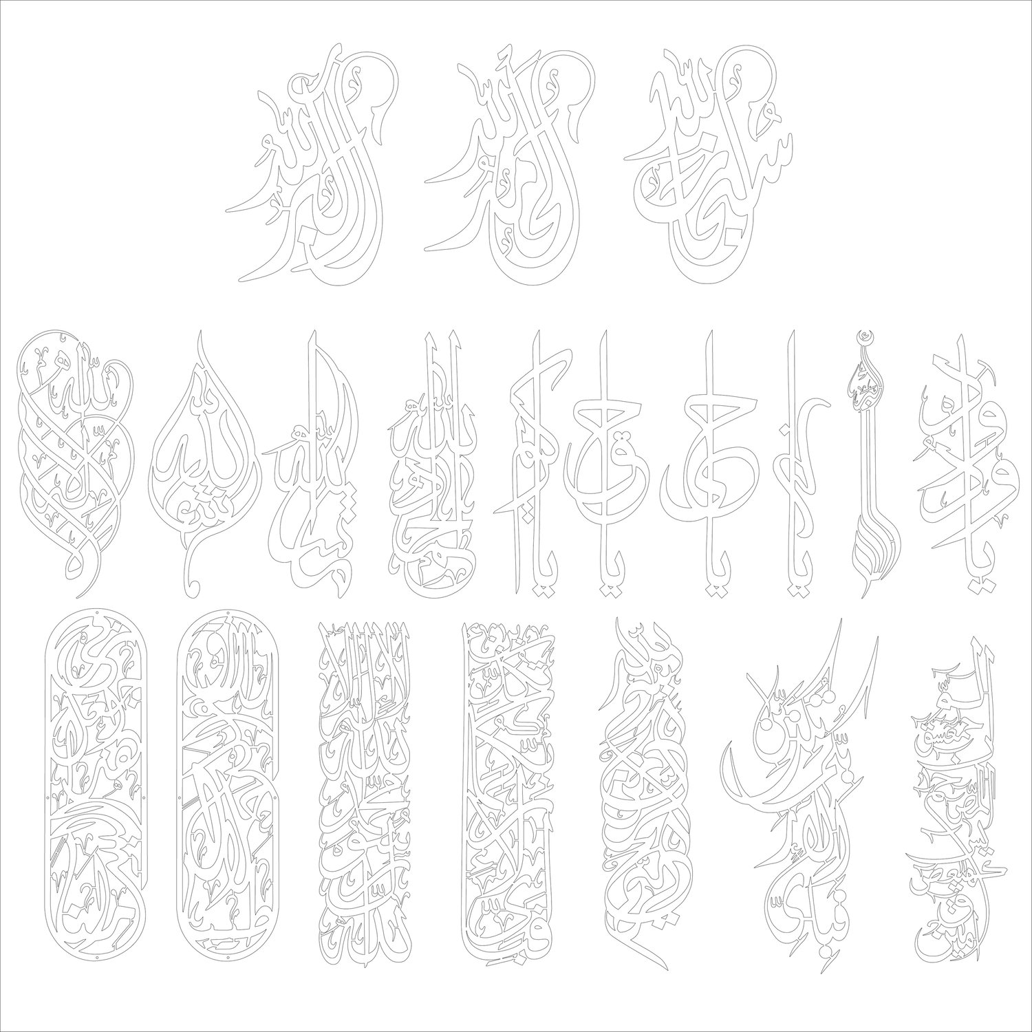 20 Vertical Islamic Calligraphy Designs | CNC & Laser Cutting Files Bundle