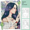 今回も植物と少女をメインモチーフにしたぬり絵のPDFデータです。