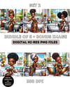 Spring Bathroom Chibi African Woman Digital Images - Set 2