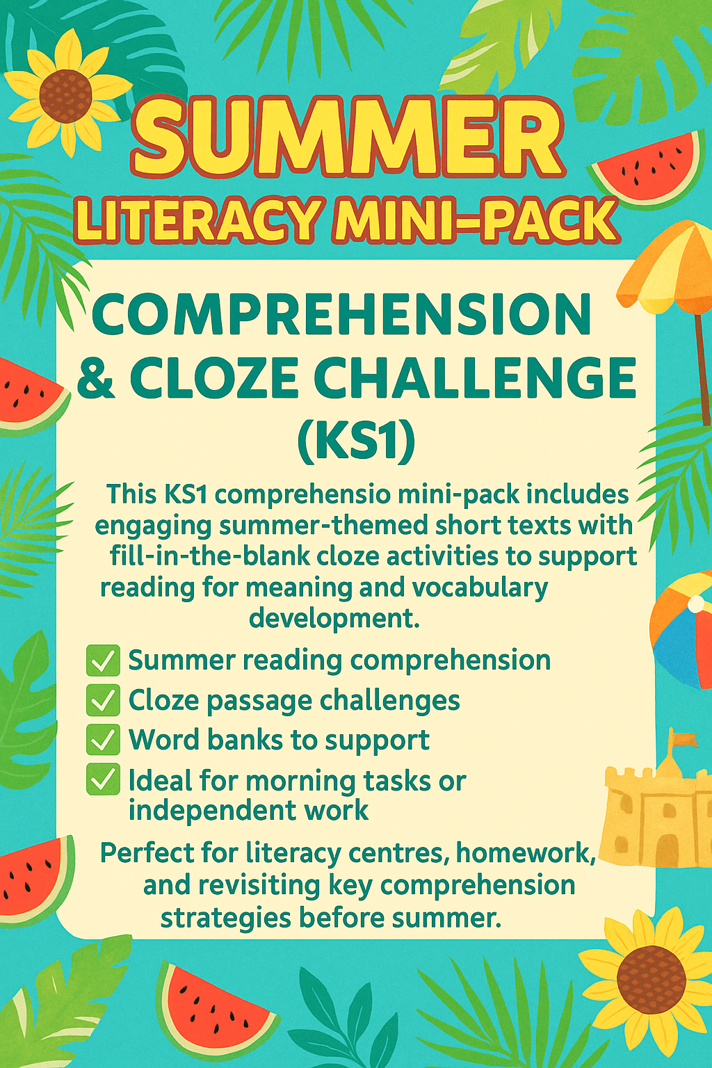 Summer Literacy Mini-Pack – Comprehension & Cloze Challenge (KS1)