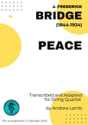 "Peace" is a secular part-song composed by Bridge, with lyrics by I.J. Innes Pocock. It was first published in 1880 and later in 1915 by Novello and Co. The lyrics describe a joyful scene where all creatures celebrate the proclamation of universal peace.