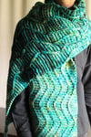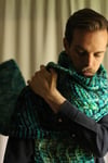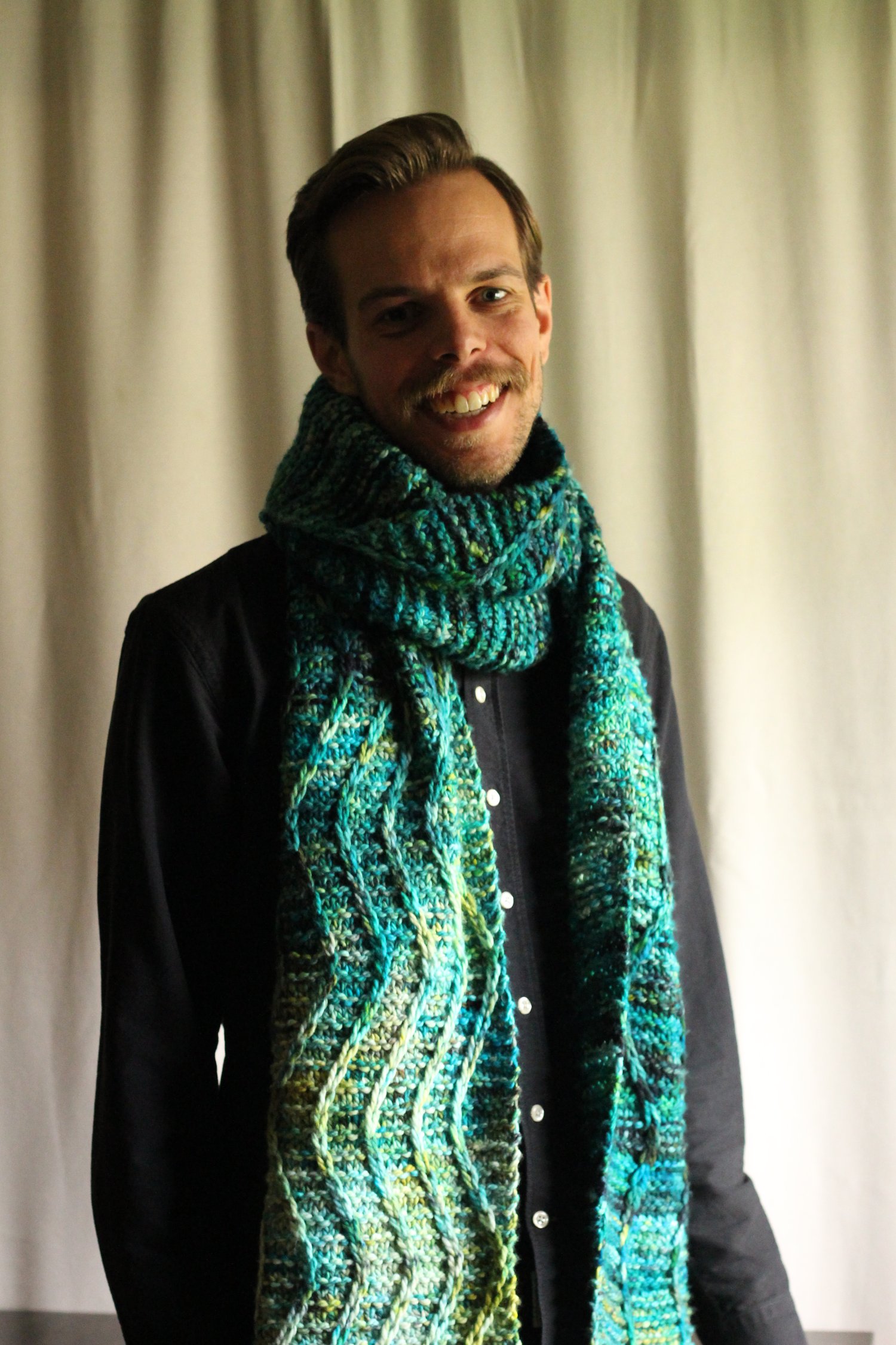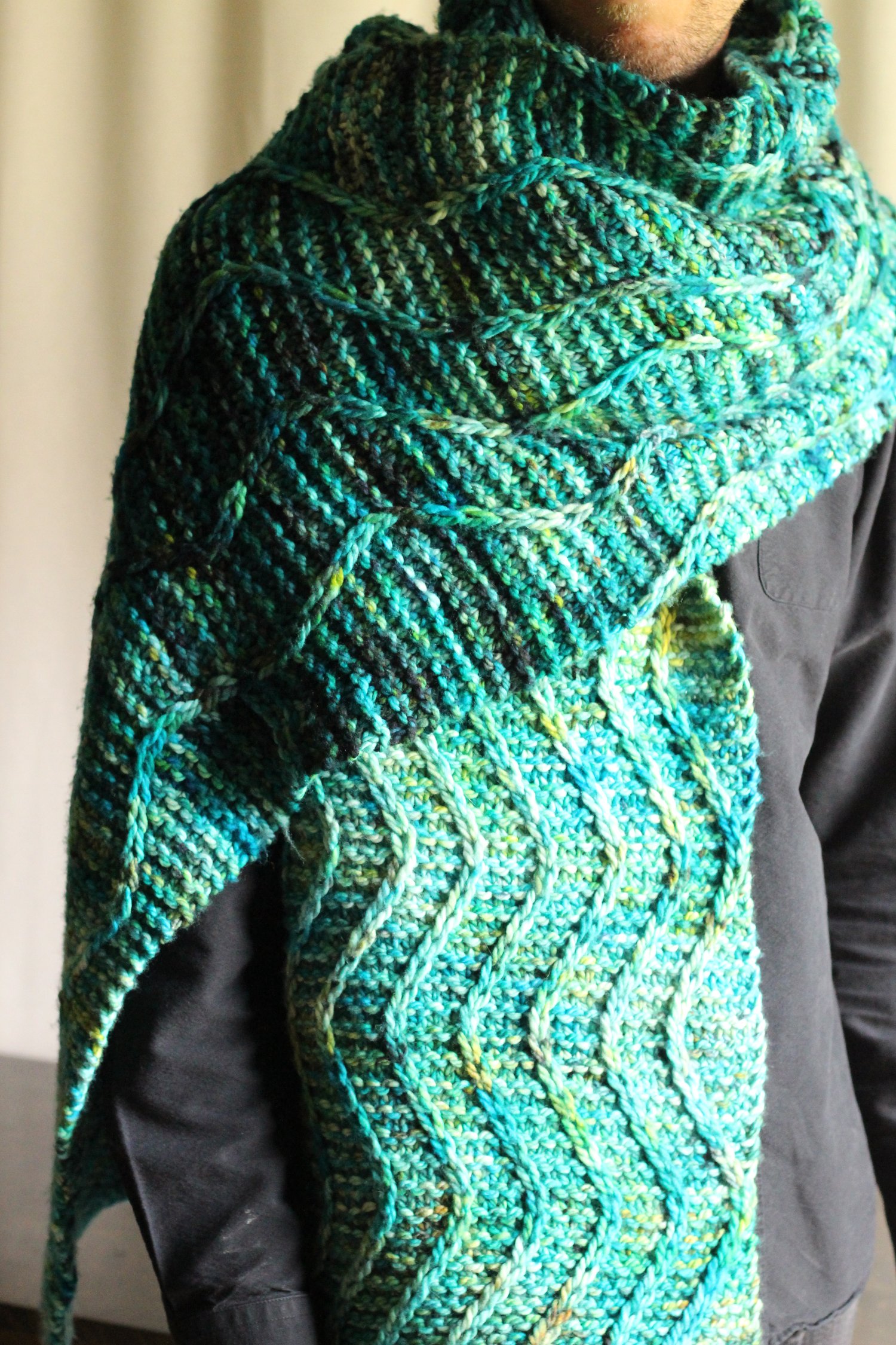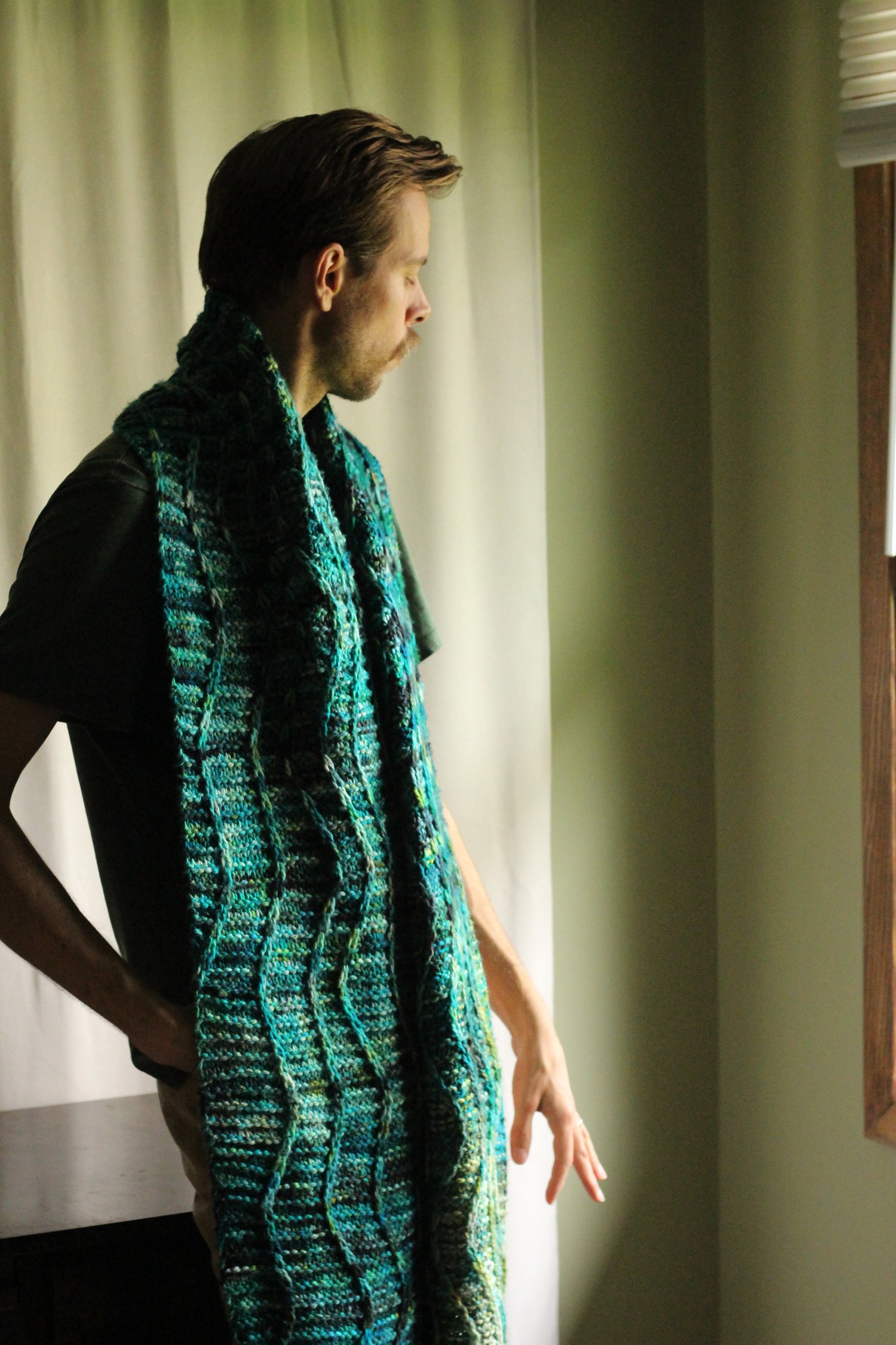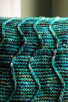 Ulmo is the Lord of Waters who “speaks to those who dwell in Middle-earth with voices that are heard only as the music of water.” The ripple motif and the colorway used for this design were both inspired by this Ainu and his connection to water. This is a simple scarf design elevated by an asymmetrical slipped stitch pattern that ripples across the face of the garter stitch background like the ripples on a pond.