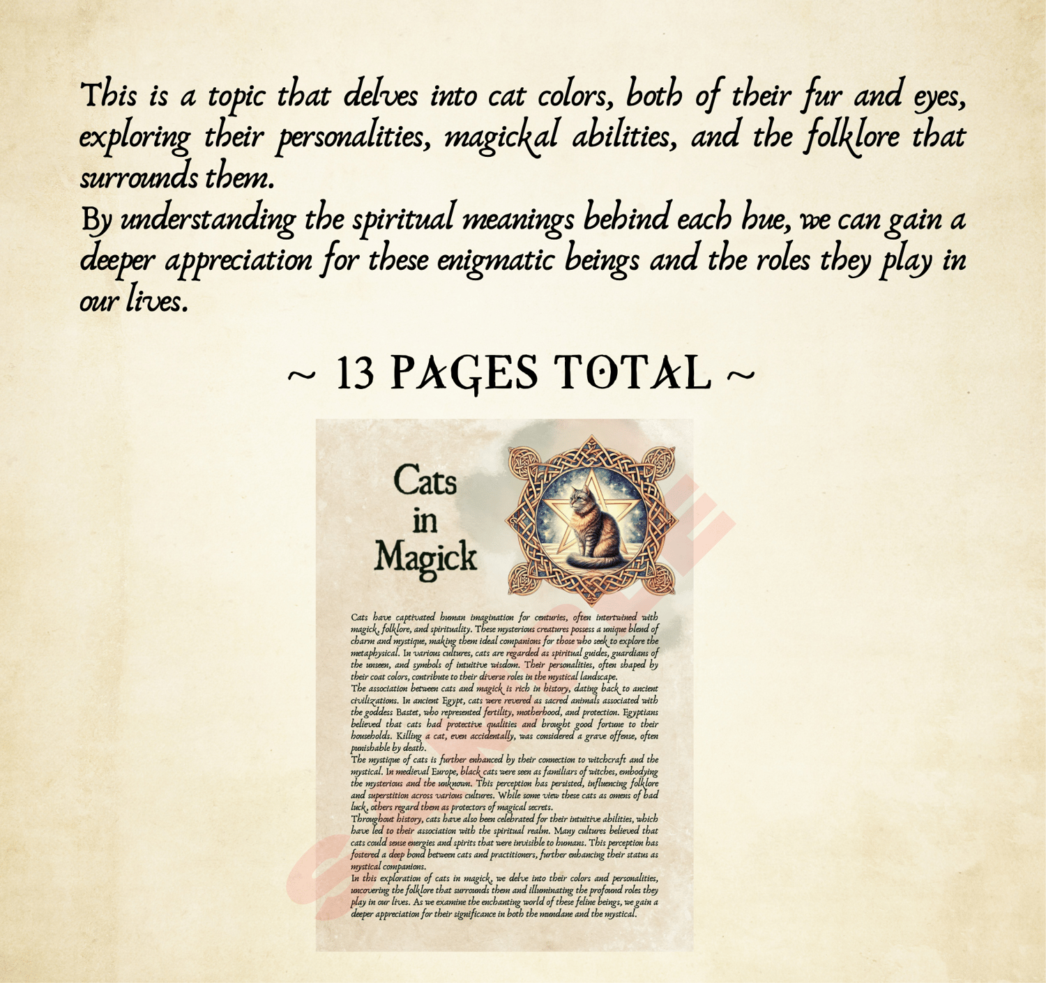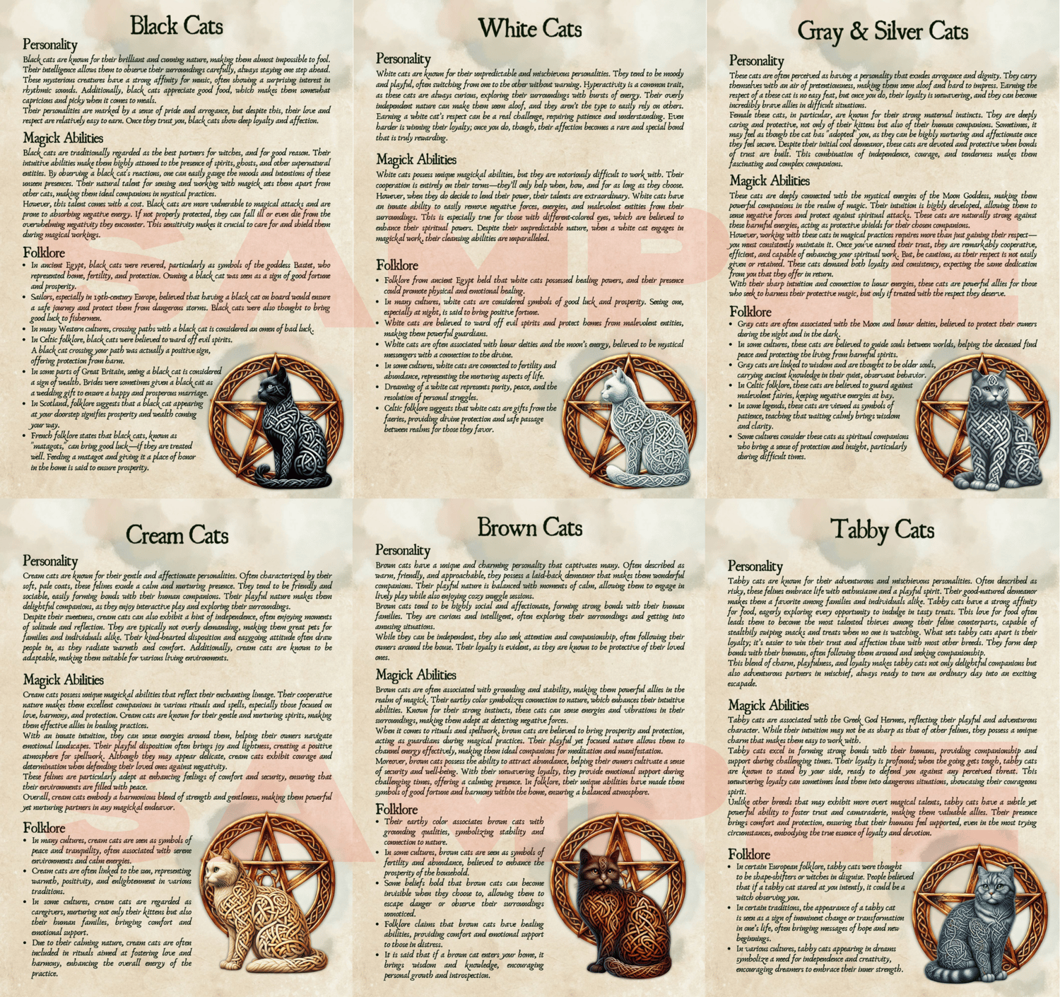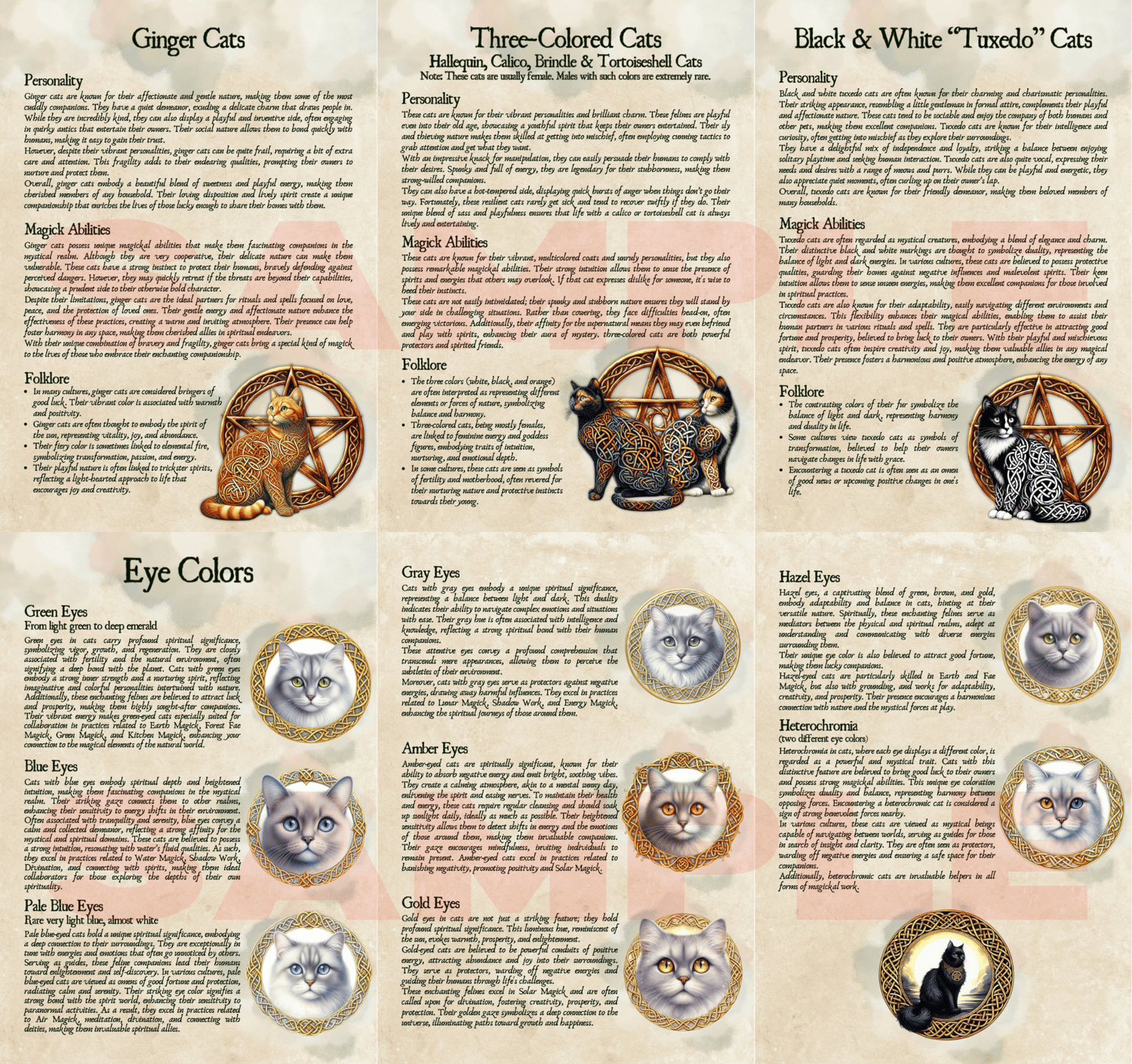 This is a topic that delves into cat colors, both of their fur and eyes, exploring their personalities, magickal abilities, and the folklore that surrounds them.