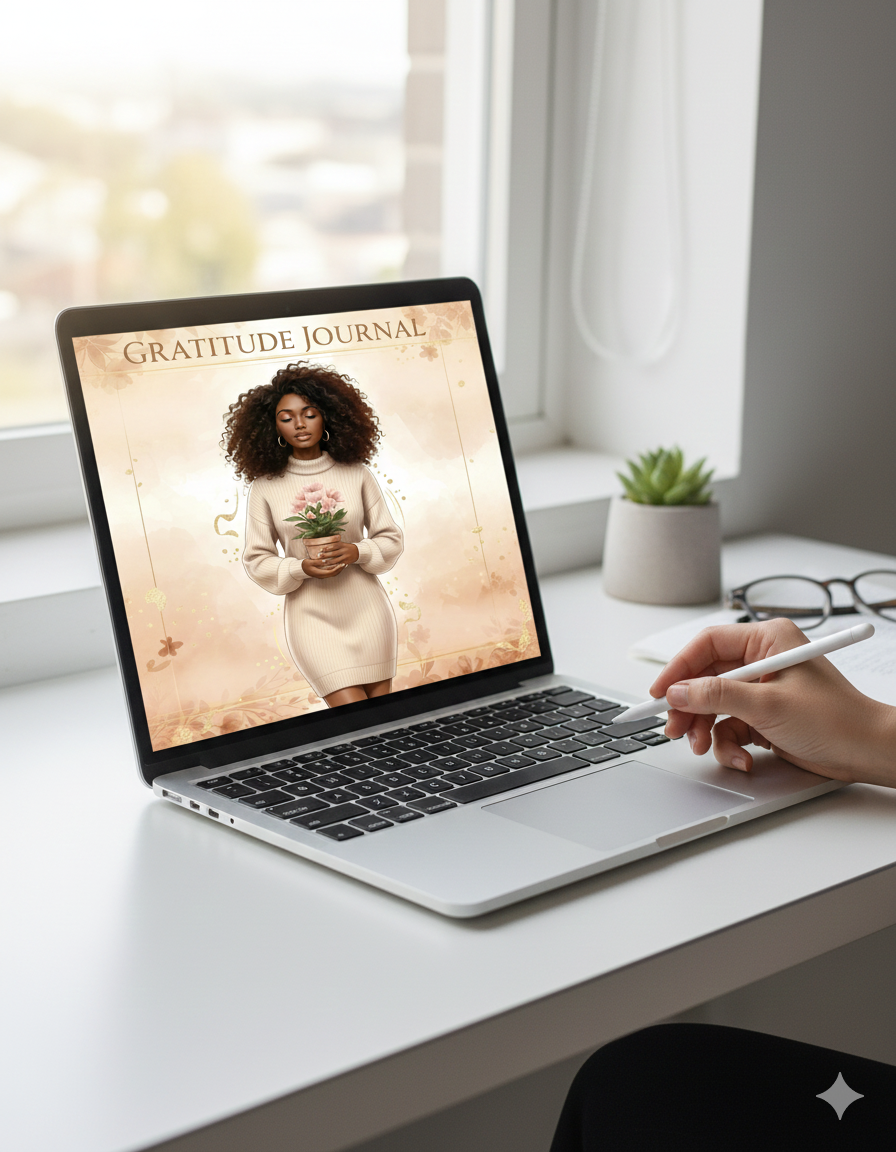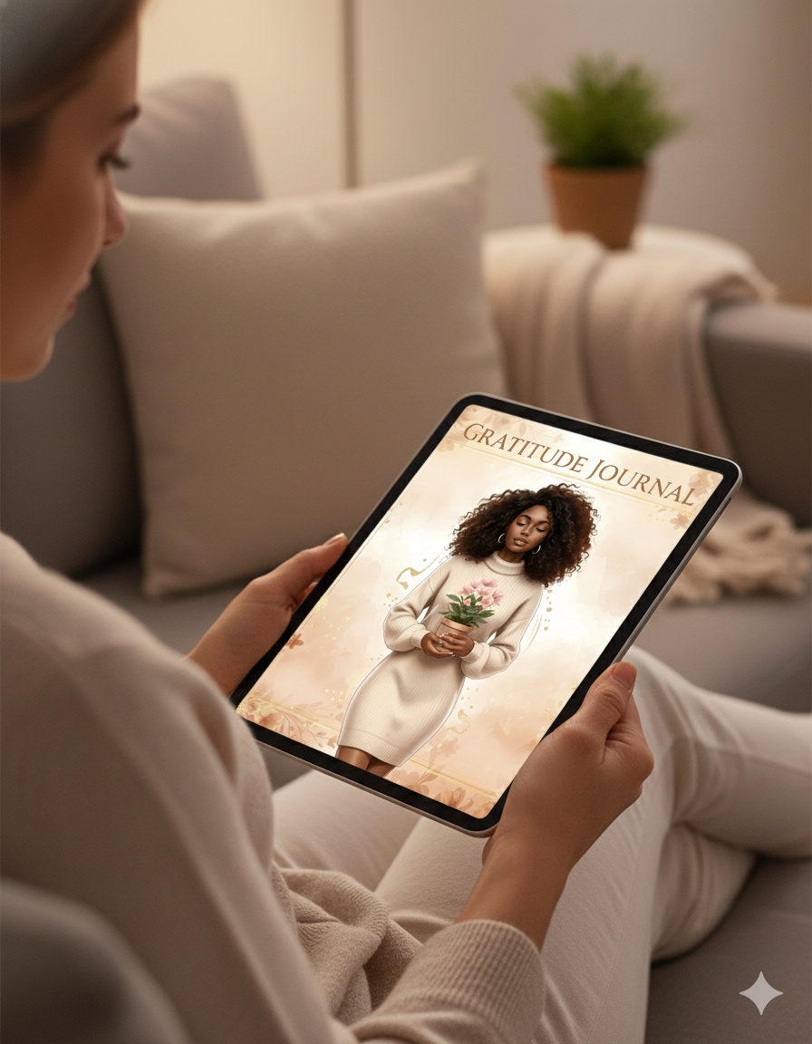 Inside, you’ll find simple daily prompts, reflection spaces, affirmations, and gentle reminders that make gratitude journaling feel natural and enjoyable.