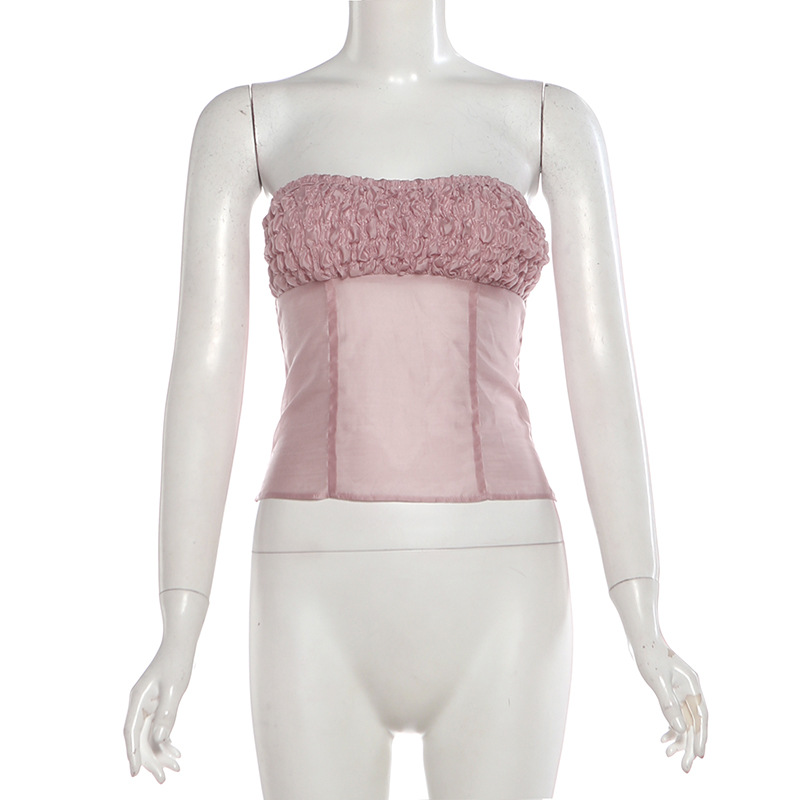 Coquette indie designer pink pleated bandeau mini skirt set