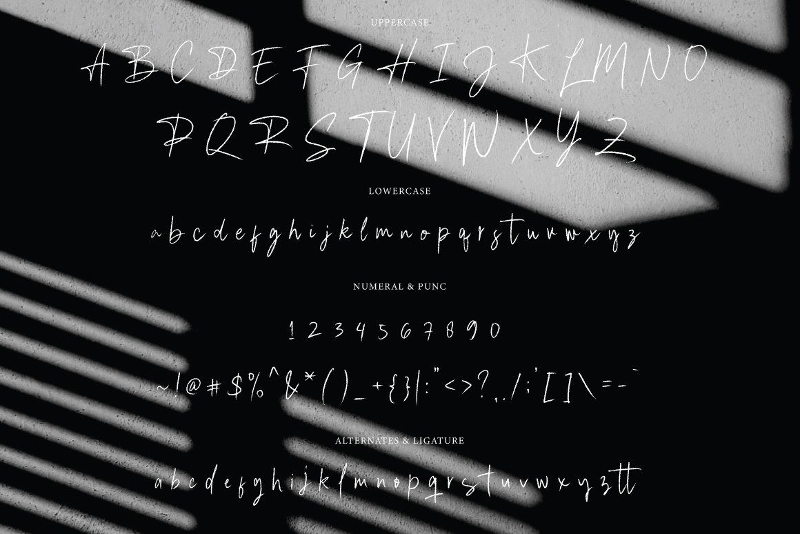 Lemigal Signature Brush come with 200+ glyphs. The alternative characters were divided into several Open Type features such as Swash, Stylistic Sets, Stylistic Alternates, and Ligature.