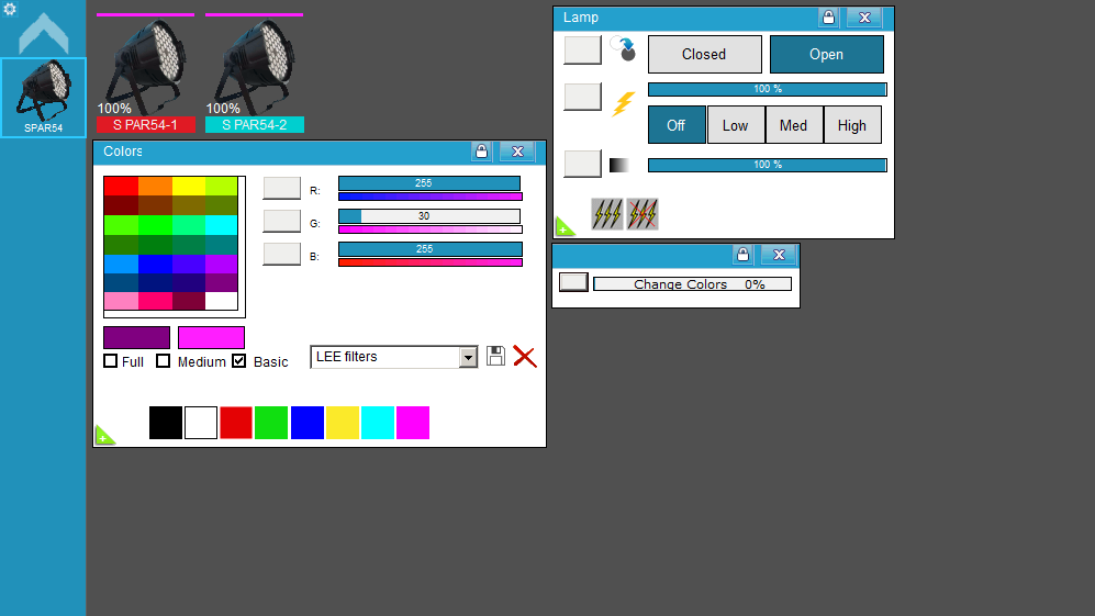 • Accesos directos a Colores Básicos: Blanco, Rojo, Verde, Azul, Amarillo, Celeste y Púrpura.