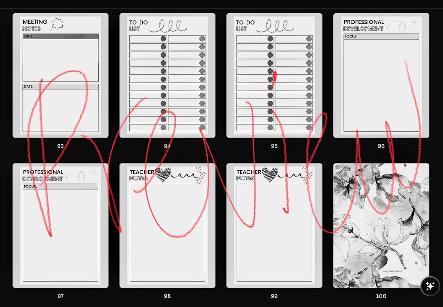With 100 pages packed with essential planning sheets, you'll be able to keep track of everything from lesson plans and assignments to meetings and events. Each page is designed to be customizable so you can tailor it to your specific needs!
