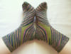 Another sock construction experiment, these begin at the heel with a small square and are increased outward before splitting in two for the foot and the leg. The varying stitch-counts create an interesting effect with variegated yarns.