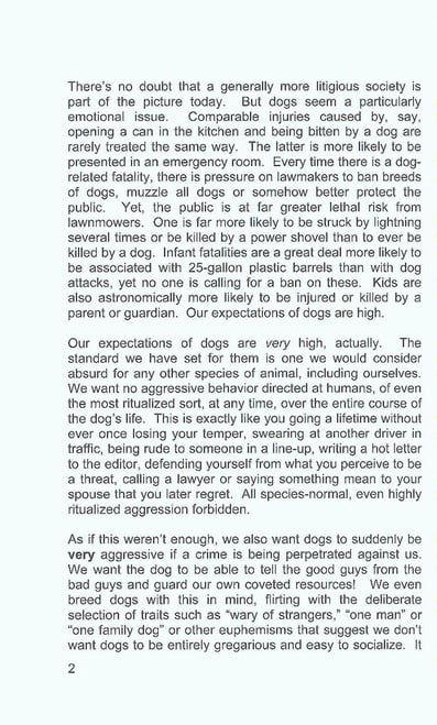 A totally comprehensive and practical treatment of a common and very serious behavior problem,. Jean Donaldson translates complex animal learning theory into useable procedures without sacrificing scientific accuracy. Anyone who works with dogs will benefit from reading Mine!