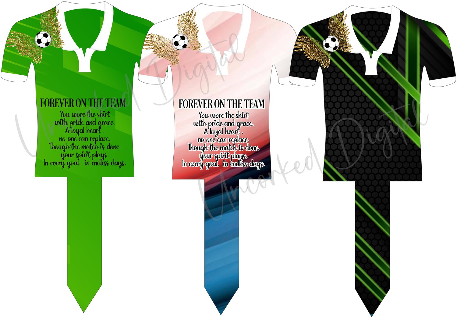 Set of 7 football shirt grave marker designs to fit the blanks from Woodform Crafts