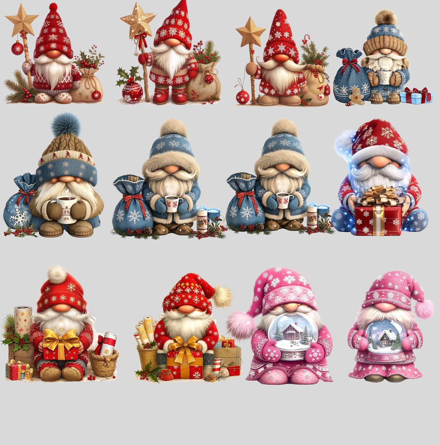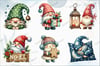 44 individual Watercolor Christmas Gnome PNGs