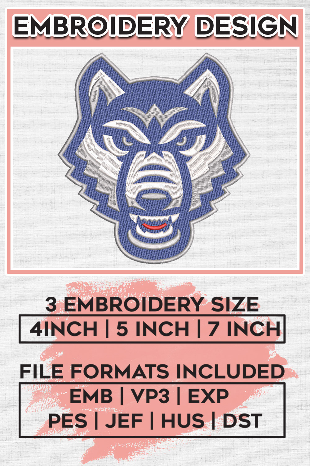 NCAA West Georgia Wolves Team Head Mascot Logo Embroidery Designs, NCAA West Georgia Wolves Logo Machine Embroidery Files, NCAA Basketball Team Logo embroidery designs, NCAA West Georgia, Digital Download