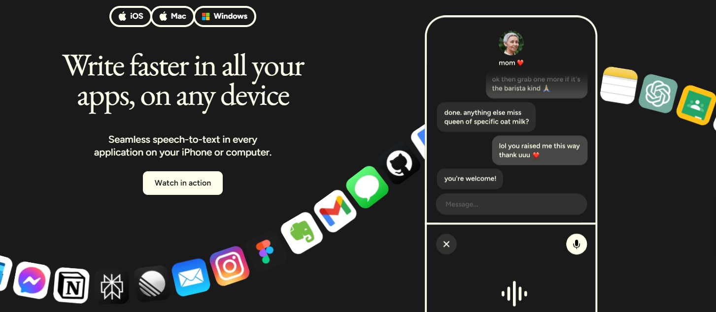 Seemless Speech-To-Text in avery application on your iPhone or Computer.