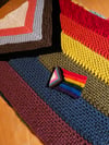 And then the bias idea hit me! Use bias stripes to create the edge of the arrow part! So I tested it out, it totally worked, and I set out to turn it into a free pattern so anyone who wants to knit a progress flag can!