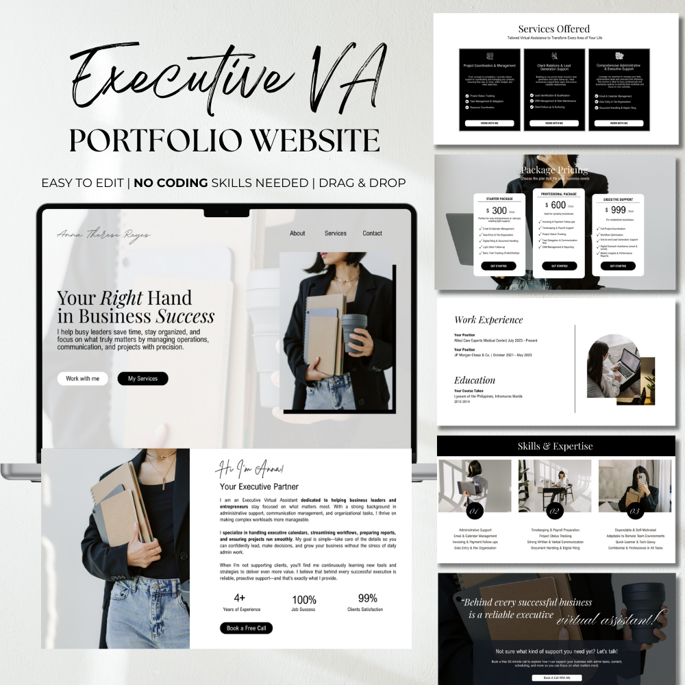 Stand out and land clients with this professionally designed, ready-to-use Executive Virtual Assistant Portfolio Website Template.