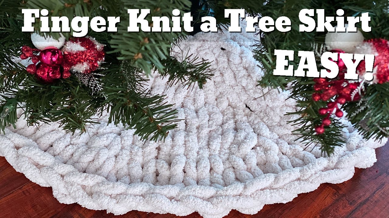 This finger-knitted tree skirt creates a knit-like look using only your fingers, forming a soft, chunky circular fabric that’s easy to customize with simple increase rows. A bold looped edge gives it a cozy, modern finish.