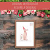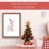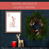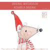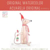 I painted this Christmas mouse with high-quality watercolors on Canson XL paper, 300 gr/m2, and it measures 15 x 19.5 cm. It is signed on the front and signed and dated on the back.