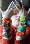 ten patterns for wrist cuffs, each using 10 yards of yarn and 2 buttons