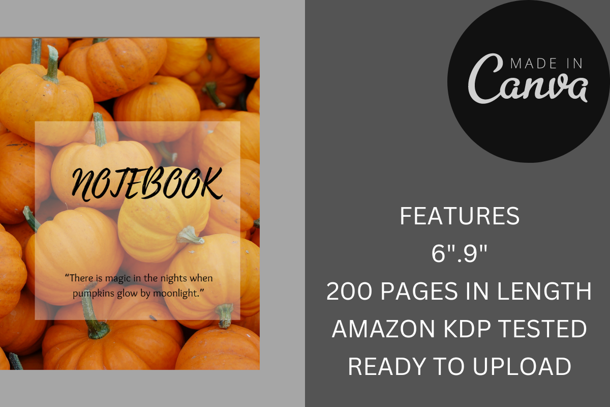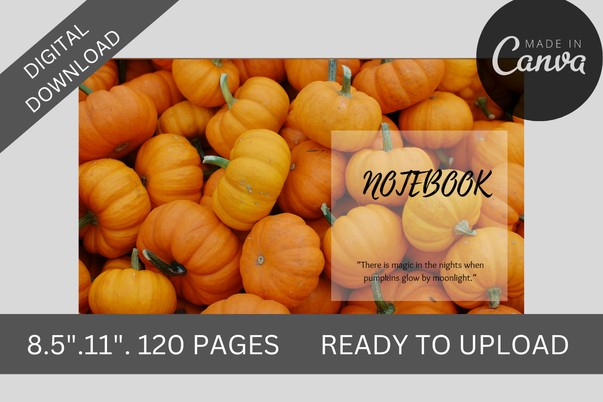 PUMPKIN THEMED KDP LINED PAPER COVER, LOW CONTENT BOOK COVER FOR KDP READY UPLOAD, PUMPKIN KDP JOURNAL PAPER COVER, JOURNAL NOTEBOOK MOCKUPS, KDP CANVA NOTE