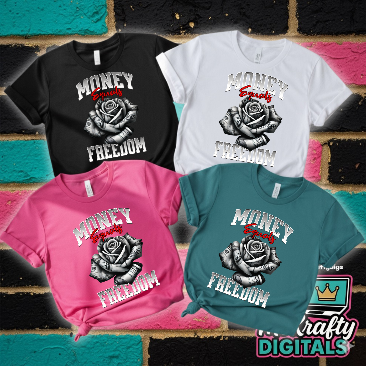 #MoneyEqualsFreedom #MoneyRoseDesign #DigitalDownloads #BossMindset #SublimationDesign #DTFPrintReady #MoKraftyCustoms #SideHustleGear #EmpowerYourBrand #CraftingForProfit