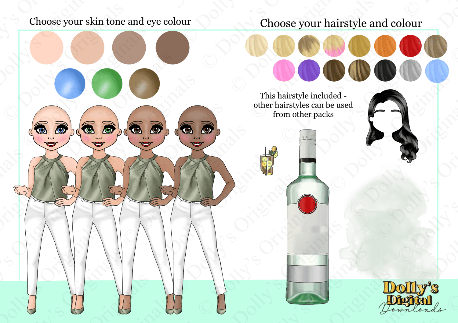 Instant digital download of our White Rum Bottle Dolly Character Bundle PNG (34 PNG’s)