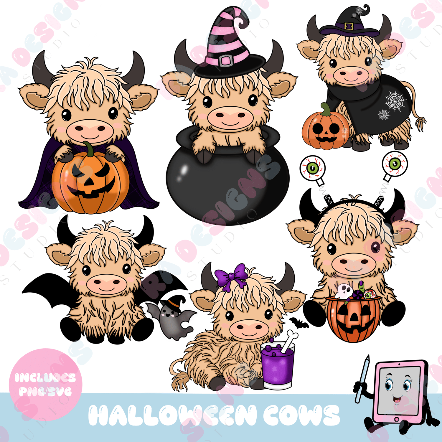 Instant download of our halloween cows set includes 6 pngs/svgs