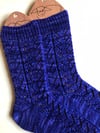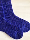 Nightsea socks are knitted in the wonderful Easyknits Deeply Wicked 4ply in Electric Boogaloo colourway, superwash merino. These are toe up socks & I have used the German Short Row heel method, no more wrap & turn sts. You can substitute your favourite heel method if you wish.