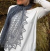 In the half-light of Europe, the dawning, and falling dusk, the voice that heralds the transition is the blackbird. Sweet, piercing, poignant, carrying clear and light across the pellucid air of a summer’s day. Throw on this lightweight shawl and steal out to listen to the lead choristers of your own locality. Easy to work and wear, like blackbird song this one has the beauty of simplicity and clarity of line.