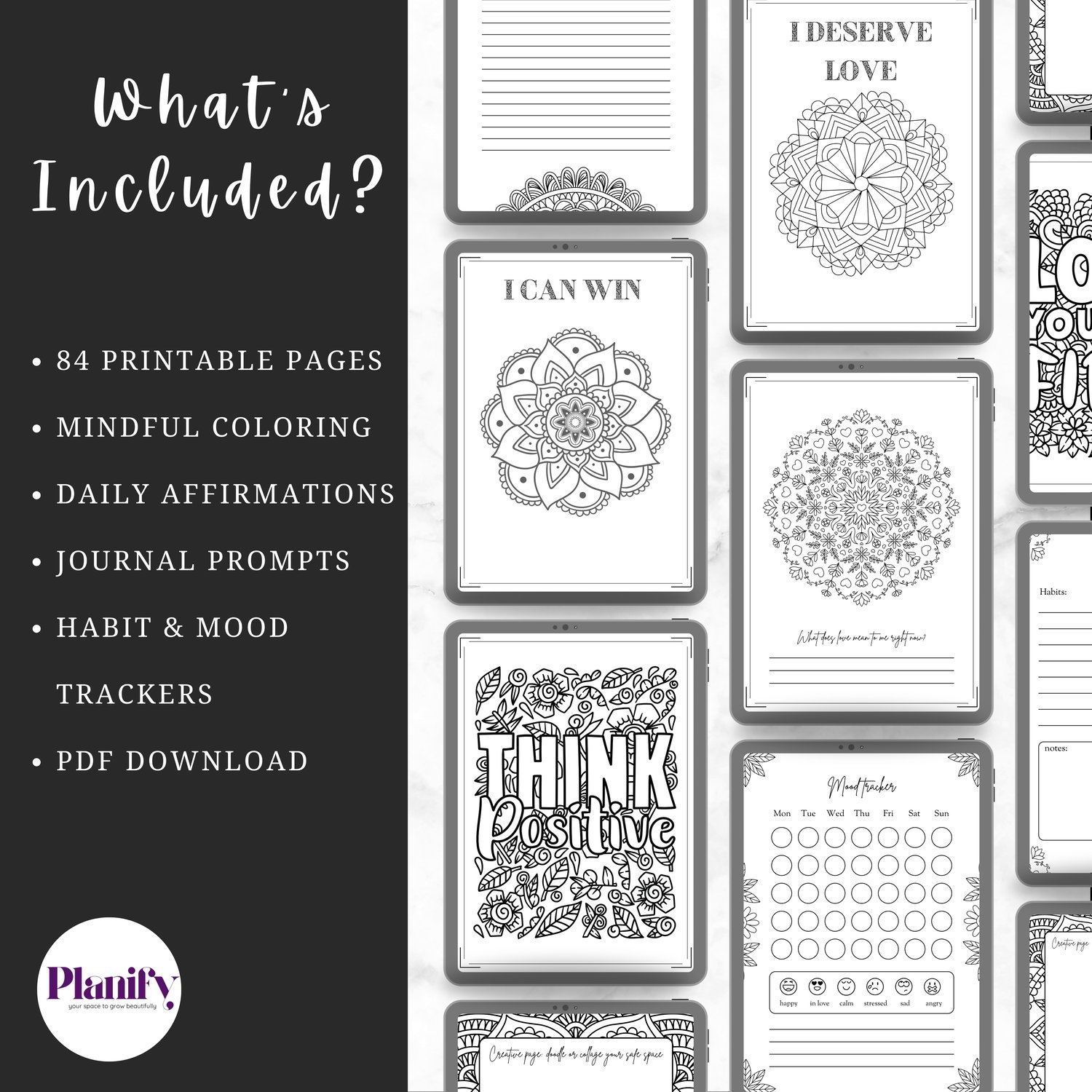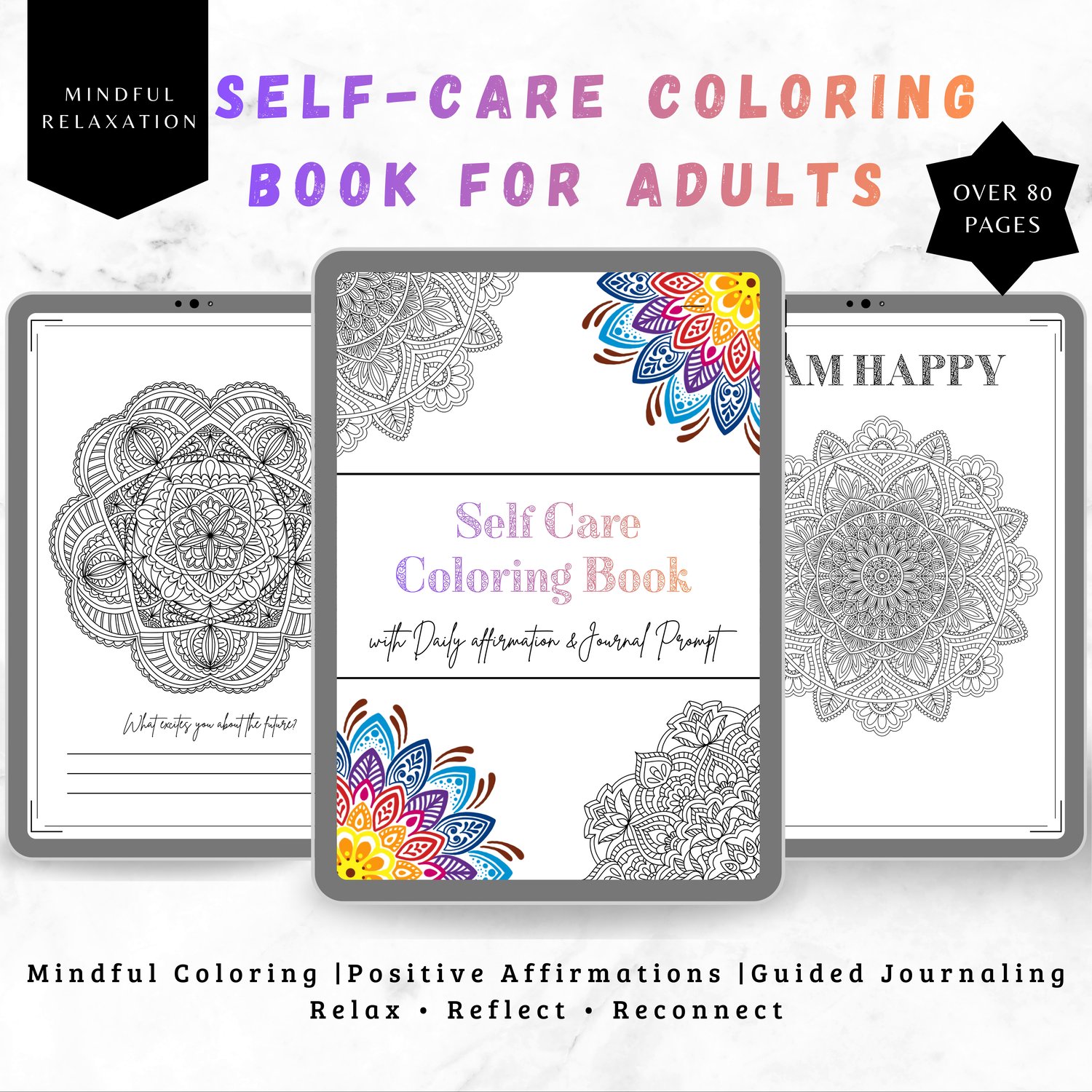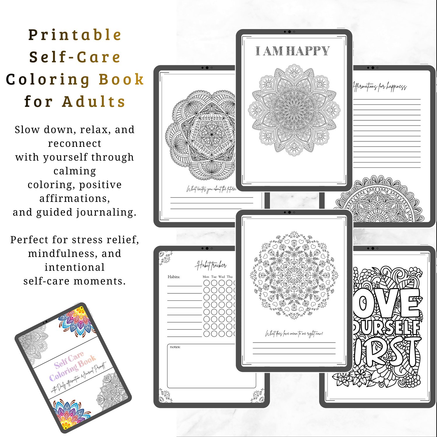 Printable Self-Care Coloring Book for Adults – Mindfulness Coloring Pages with Affirmations & Journal Prompts (PDF)