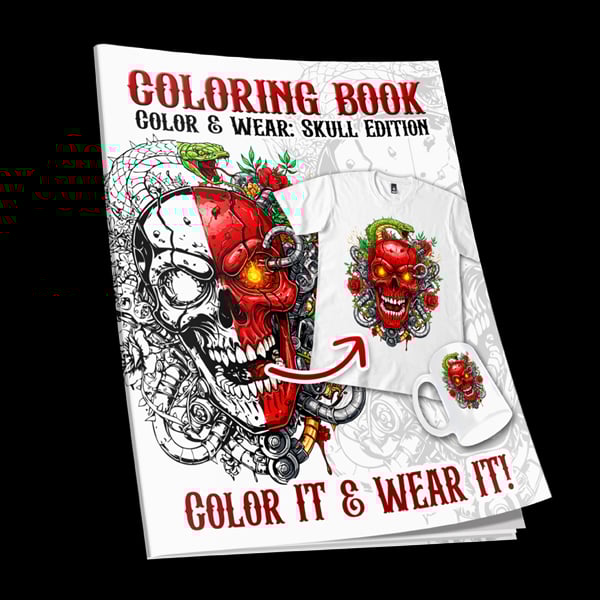 Color & Wear: Skull Edition is your creative playground — a printable skull-themed coloring book designed for DIY artists, merch lovers, and skull art fans.