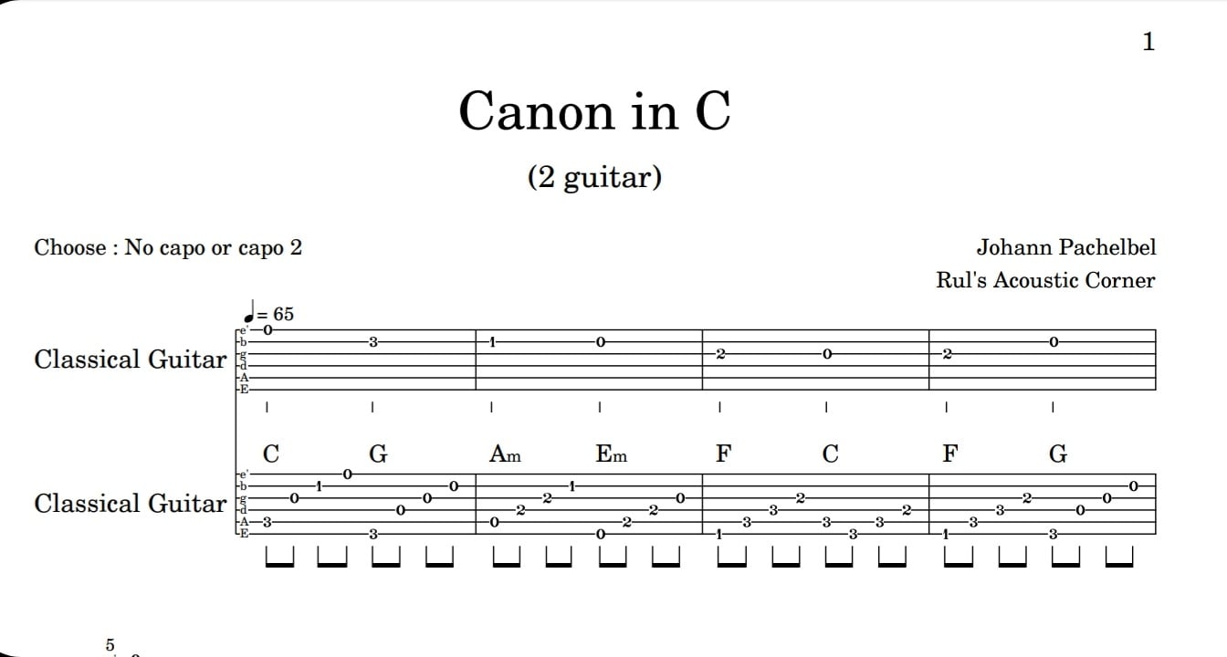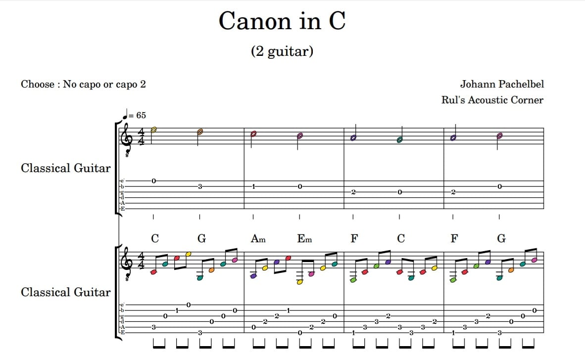 Canon in C - Johann Pachelbel Classical 2 Guitar Musical Notes Tabs PDF Video
