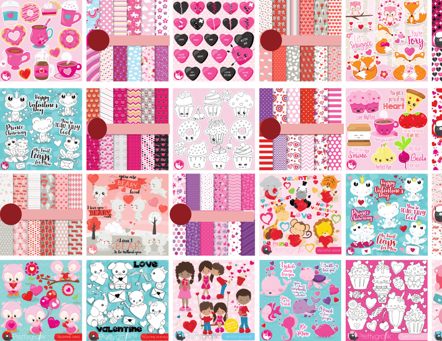 The Magical Unicorn Bundle features 45 graphics packs with over 600+ clipart, patterns and elements. It includes tons of adorable unicorns in various Christmas, Valentine, St-Patricks, Easter themes and more. All Clipart come in JPG, PNG, and EPS formats, patterns are in JPG Format. Great for commercial and personal projects, themed activities,
