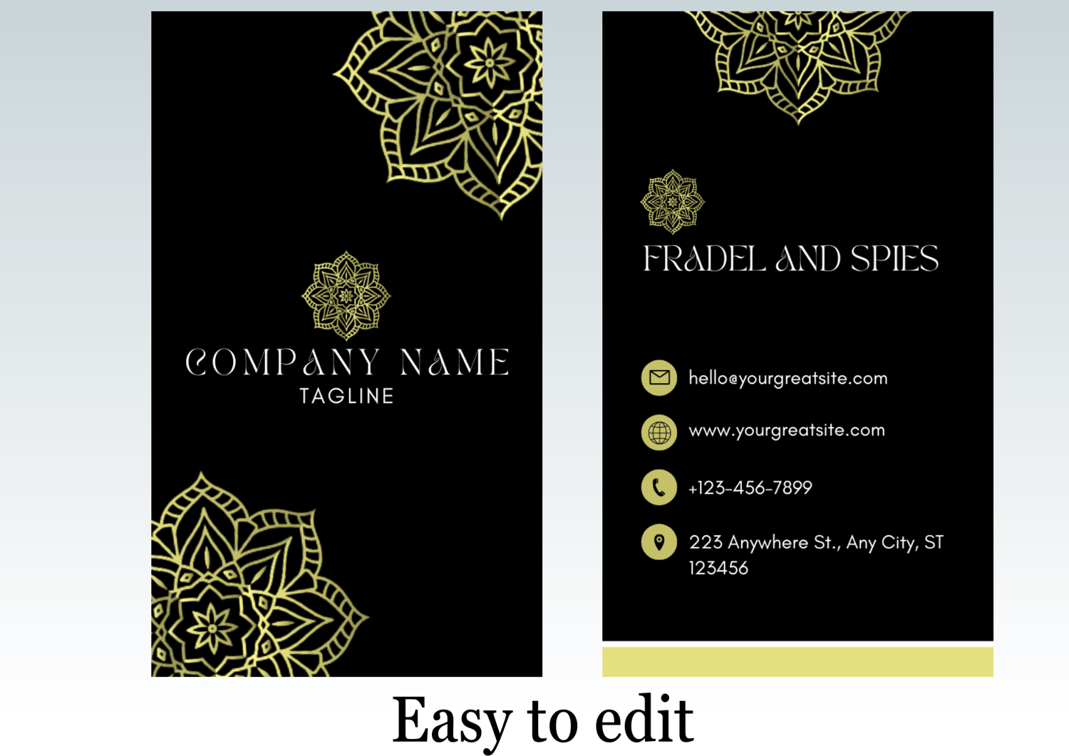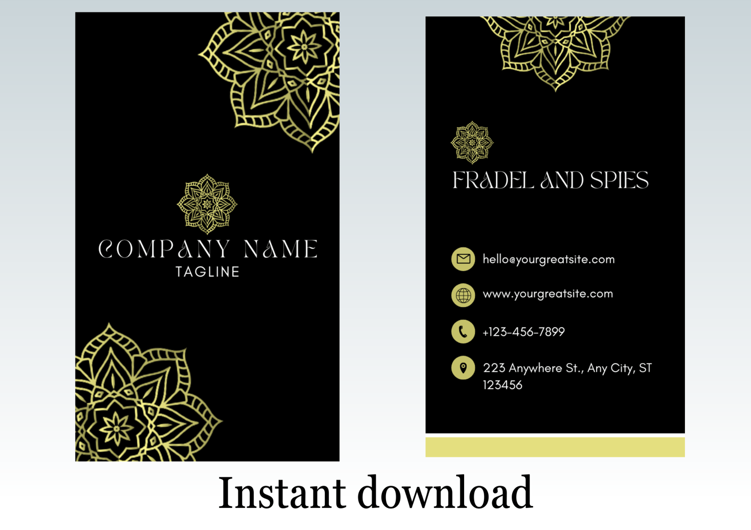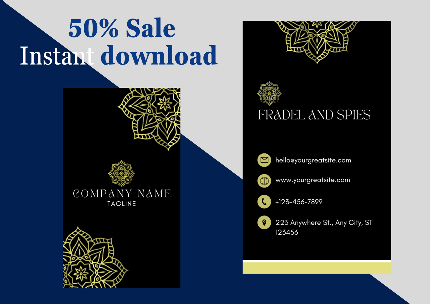 A magnificent "Beautiful Black and Gold Mandala Logo Business Card"—a stunning combination of refinement and creativity sure to make an impression on every recipient, Elegant business card was created with great care and attention to detail, making it ideal for business owners, professionals, and creatives who want to make an excellent first impression.