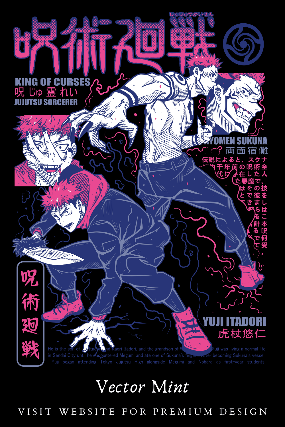 Ryomen Sukuna Yuji Itadori Jujutsu Kaisen Anime T-Shirt Design King of Curses Streetwear Graphic PNG Print Ready