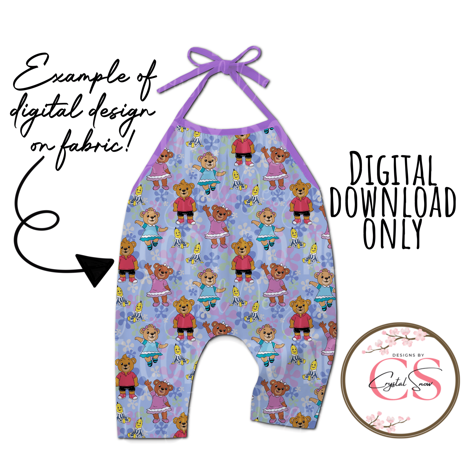 A retro-inspired seamless pattern bundle featuring nostalgic banana pjs and bear besties — includes THREE variations for maximum creative flexibility.