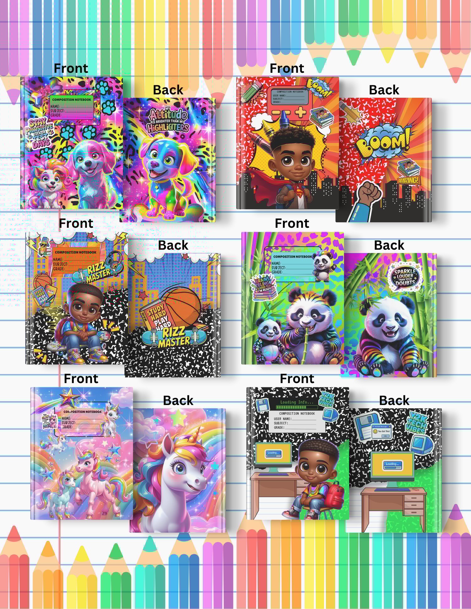 - 13 Notebook Covers â âRizz Masterâ Theme (Front + Back | 6.5x9.75 on 8.5x11 sheet)